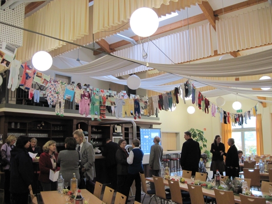 Die Diashow, die Michaela Wüller für uns zusammengestellt hatte, gab einen kleinen Einblick in die Vielzahl der Kinder, deren Mütter wir im Laufe der 25 Jahre begleitet haben. Es sind immerhin 29.000 Kinder von 21.000 Müttern in unserer Statistik zusammen gekommen! Und an dieser Stelle auch unser Dank an die vielen Frauen, die ihre Strampler für den Saalschmuck zur Verfügung stellten. Es bot ein wunderschönes Bild, wovon Ihr Euch hier überzeugen könnt!